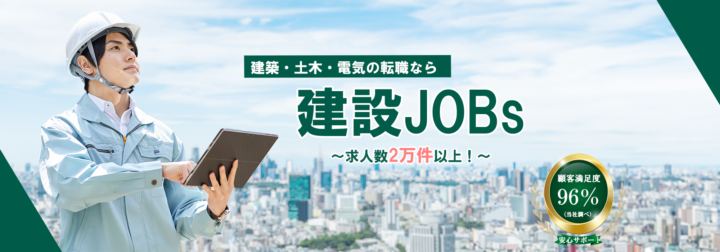 「建設JOBs」は、不動産業界と建設業界の求人を中心に扱う転職サービスです。建設・不動産業界に特化した求人を探せることが大きな特徴です。