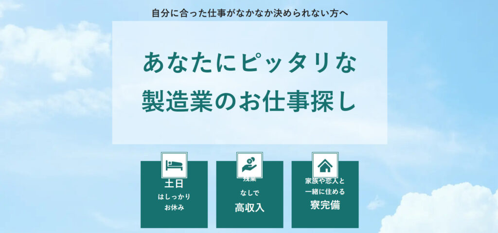 未経験から大手メーカーなどの安定した環境で、寮付き・高収入・研修充実の仕事を手に入